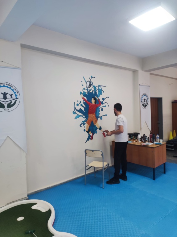 Şehit İbrahim Meral Özel Eğitim Meslek Okulu’nda yer alan mesleki atölyeler, sosyal sorumluluk projesi kapsamında tematik sınıflar bağlamında renklendirilerek öğrencilerin farkındalığı artırıldı. Yürütücülüğü ve içeriği Recep Tayyip Erdoğan Üniversitesi Eğitim Fakültesi Güzel Sanatlar Eğitimi Bölümü Resim İş Eğitimi Anabilim Dalında görevini sürdüren Dr. Öğr. Üyesi Ruhi ÇAY tarafından gerçekleştirilen “Renklendirilmiş Tematik Atölyelerden Engelsiz Yarınlara” isimli sosyal sorumluluk projesi ile dezavantajlı bireylerin görsel-duyusal gelişimlerine katkıda bulunmak, somut öğrenme becerilerini geliştirmek, sınıf içi adaptasyon ve öğrenme ortamına katılımı artırmak, derse odaklanmayı sağlamak amaçlandı. Proje kapsamında Bilişim Teknolojileri-I, Bilişim Teknolojileri-II, Yiyecek İçecek Hizmetleri, Güzellik ve Saç Bakım, Gıda Teknolojisi, Müzik Sınıfı, Moda Tasarım Teknolojisi, El sanatları I, El sanatları II, Çok Amaçlı (Spor) Salonu Atölyeleri ve Rehberlik Odası olmak üzere 11 atölyenin etkililiği artırılarak mutlu çocuk, mutlu aile, mutlu toplum hedefine katkıda bulunmak hedeflendi. Proje süreci için boya, fırça gibi gerekli malzemelere duyulan ihtiyaç Recep Tayyip Erdoğan Üniversitesi Geliştirme Vakfı tarafından desteklendi. Üniversite bünyesinde destek gören projenin özel gereksinimli öğrencilere hitap ederek görsel duyularını artırmayı ve somut öğrenmelerini kolaylaştıracağı düşünülmektedir.