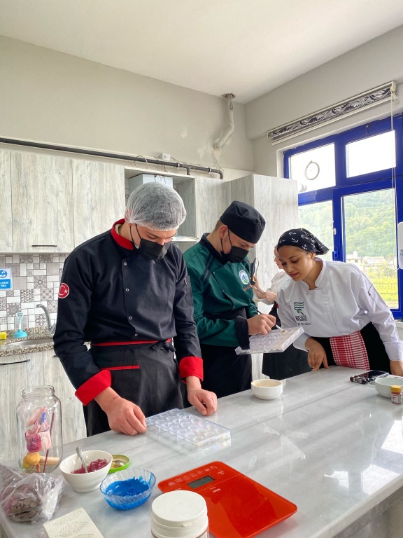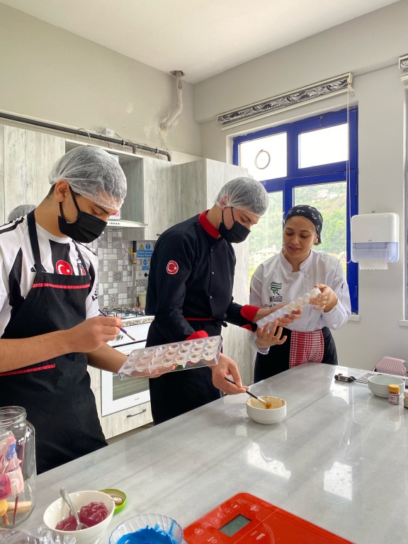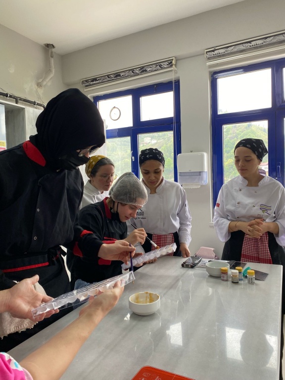 Recep Tayyip Erdoğan Üniversitesi, Ardeşen Turizm Fakültesi Gastoroni ve Mutfak Sanatları Bölümü Öğretim Görevlisi Ayşe Gülnihal ALTIN'ın şefliğinde okulumuz öğrencileriyle birlikte "Şefimle Kendi Çikolatamı Yapıyorum" adlı sosyal sorumluluk projesini gerçekleştirdik. Proje kapsamında kıymetli şefimiz öğrencilerimizle birliktikte ilk olarak madlen kek yapımına başlamış ardından bonbon çikolata yapımına geçerek çikolata işleme, parlatma ve kalıplama yöntemleri hakkında öğrencilerimize eğitim vermiştir. Bu kıymetli projede okulumuzdan desteğini esirgemeyen Recep Tayyip Erdoğan Üniversitesi Rektörlüğü'ne ve Gastronomi ve Mutfak sanatları Bölümü Öğretim Görevlisi Ayşe Gülnihal ALTIN hocamıza okulumuz, öğretmenlerimiz ve öğrencilerimiz adına teşekkür ederiz.